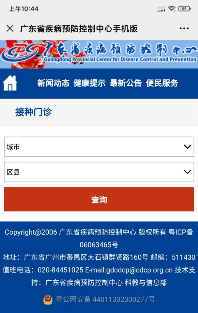 下图为广东省疾病预防控制中心(手机版)的官方页面