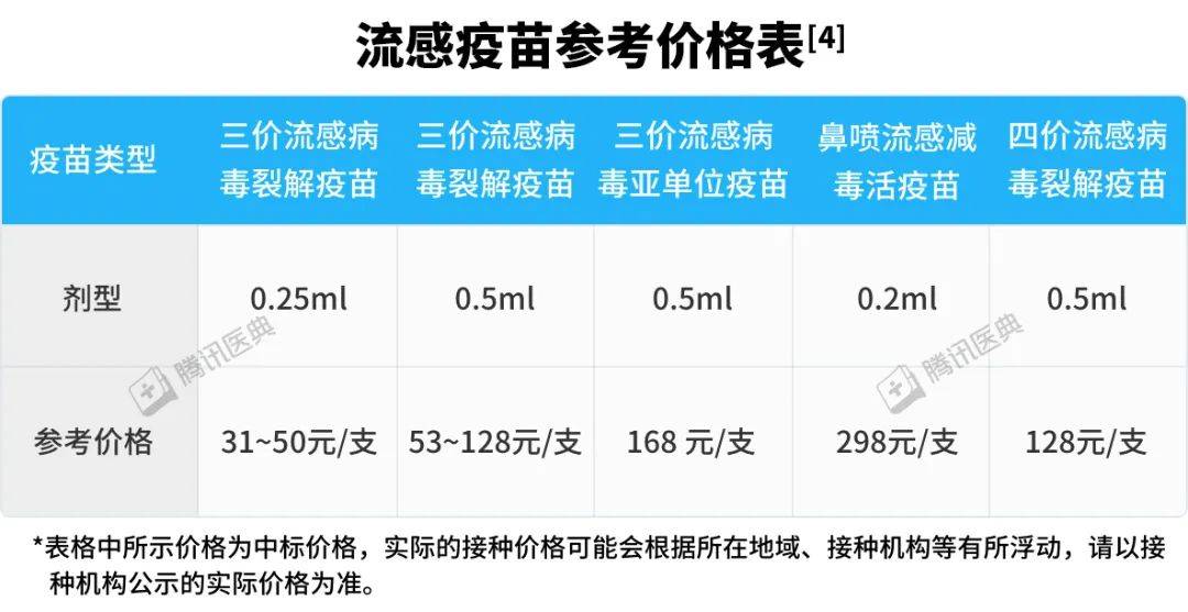 如果你不属于可免费接种的人群范围,也可以参考下方的表格打疫苗: