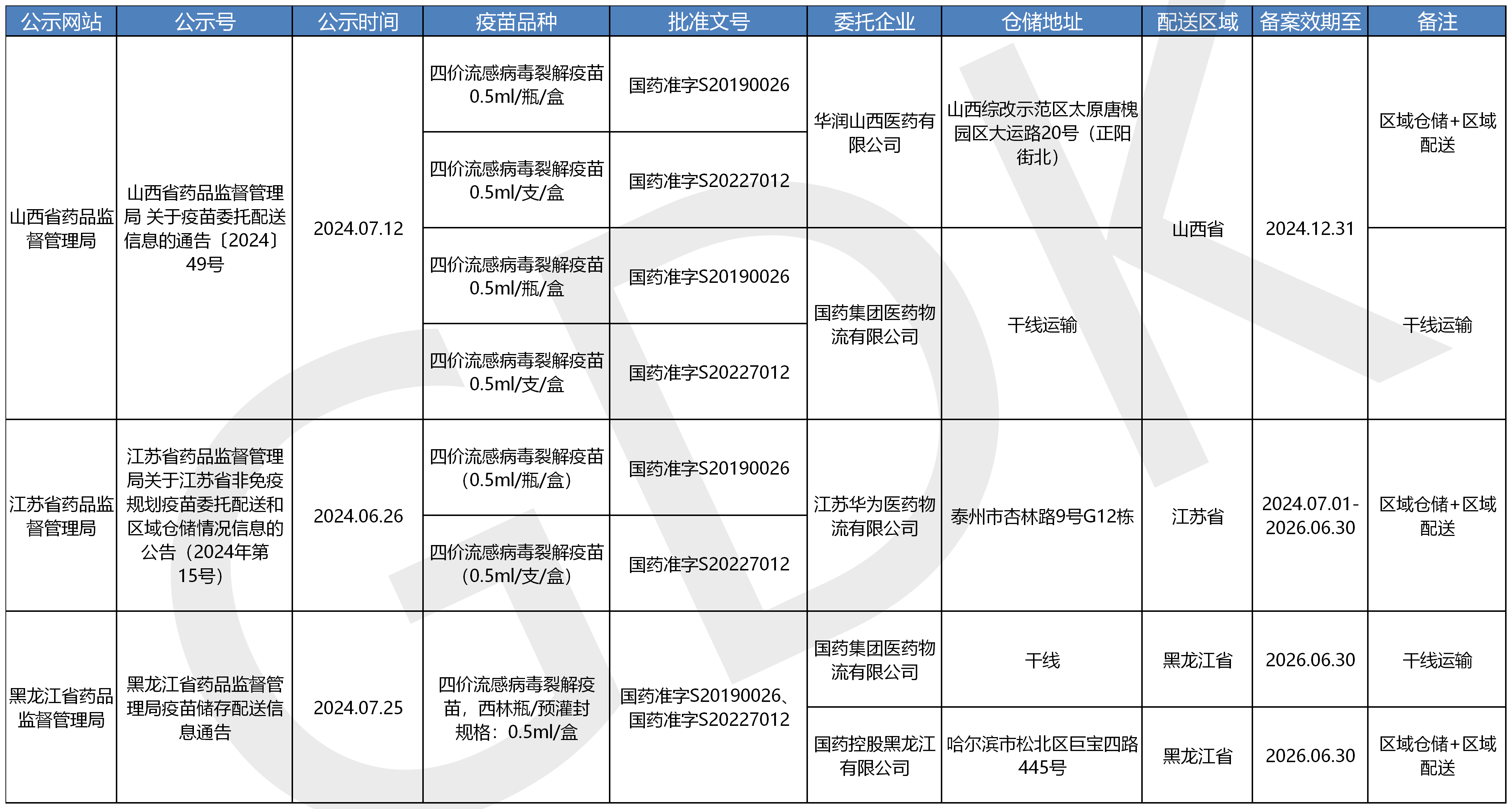 疫苗委托冷链储存、配送企业信息公开