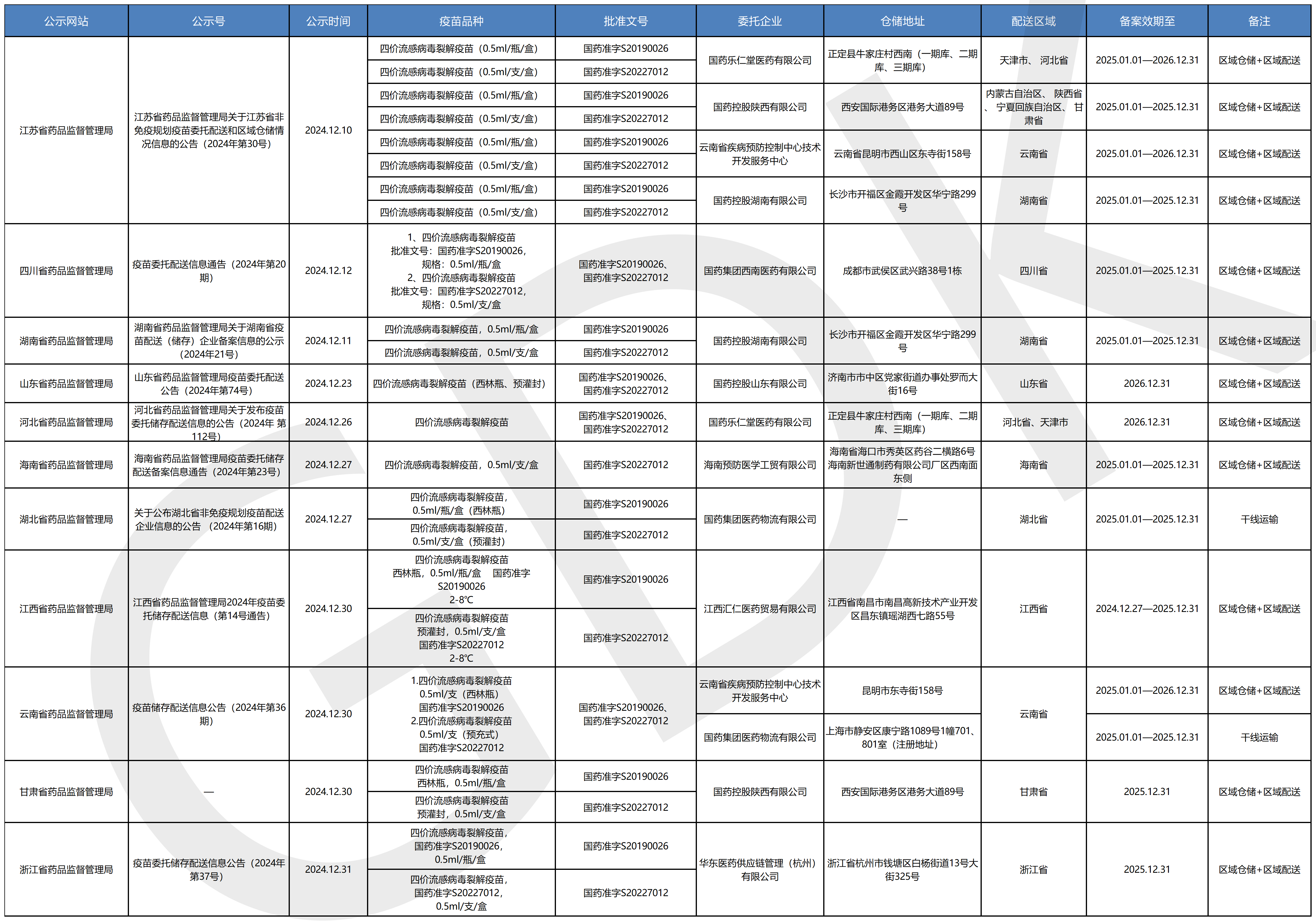 疫苗委托冷链储存、配送企业信息公开